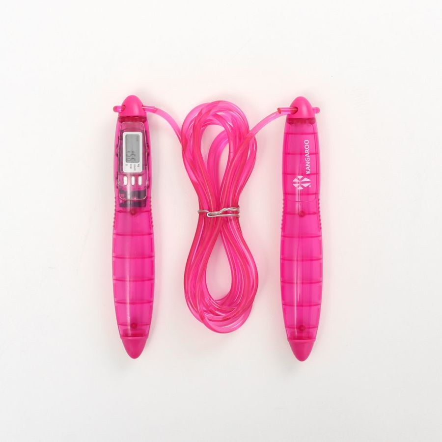 Kangaroo Digital Counter Jump Rope With LCD Display The rope handles are made of reinforced plastic and are resistant to breakage or scratches Non-slip and very comfortable to use with a rotating head in all directions LCD display with clock, digital timer and calorie measurement with automatic energy saving function 3 meter long rope, easily and quickly adjustable according to the desired length