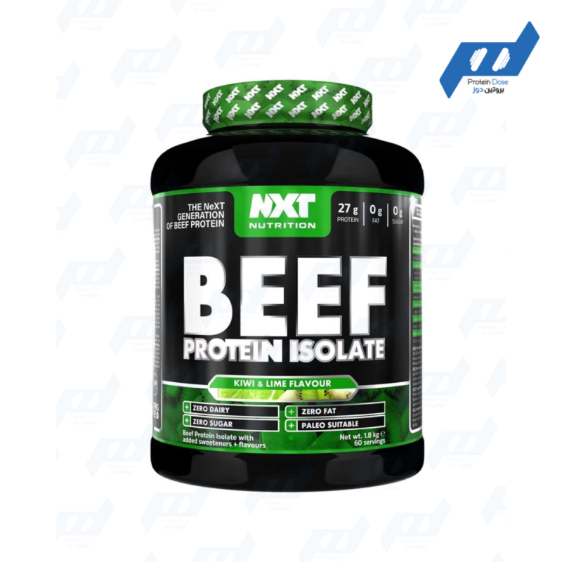 Get powerful nutritional support with Next Nutrition Beef Protein Isolate 1.8 kg. This high-quality formula, derived from beef, is rich in protein and lactose and gluten-free, making it ideal for building muscle and improving performance without the fat or sugar.
