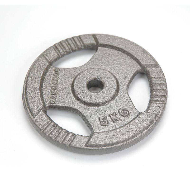 Kangaroo weight discs are made of cast iron and are not rust-proof thanks to the galvanized and insulating layer of the disc. Side disc slots for multiple non-slip exercises A hole in the center of the disc has a diameter of 30 mm to fit only regular bars that are 30, 25 or 20 mm thick Available in different weights 2.5K-5K-10K-15K Sold by piece, not pair